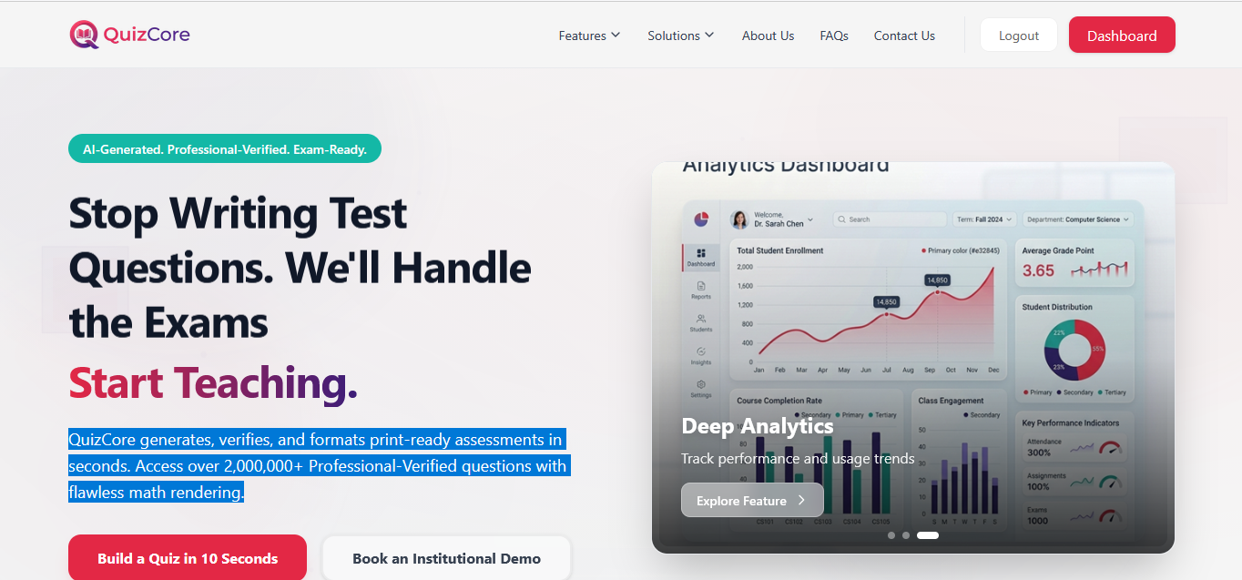 QuizCore uses machine learning to adapt curriculum delivery based on individual student progress. It provides educators with deep insights into learning gaps, enabling proactive intervention and improving overall student outcomes by 25%..